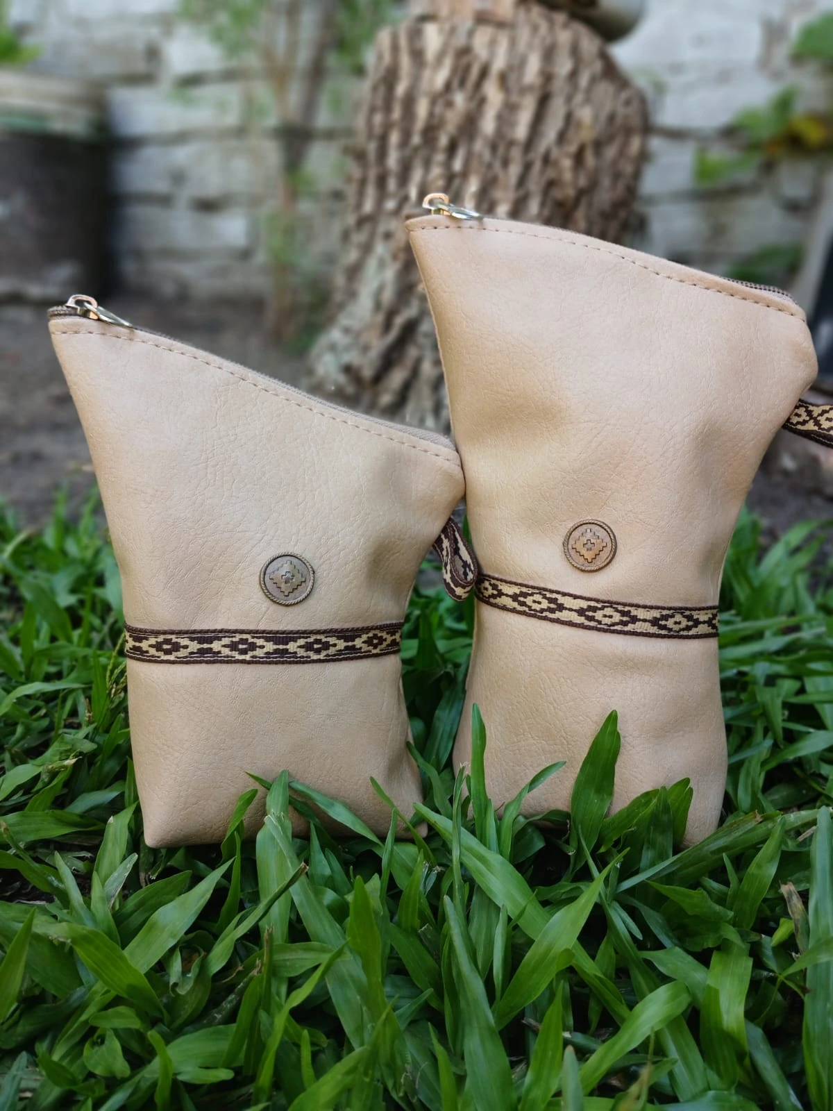 Yerbera y Azucarera de cuerina, color beige, con forro interno .