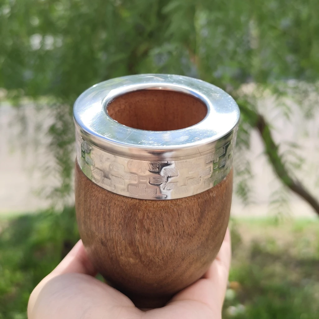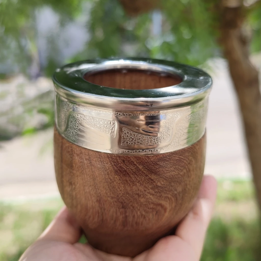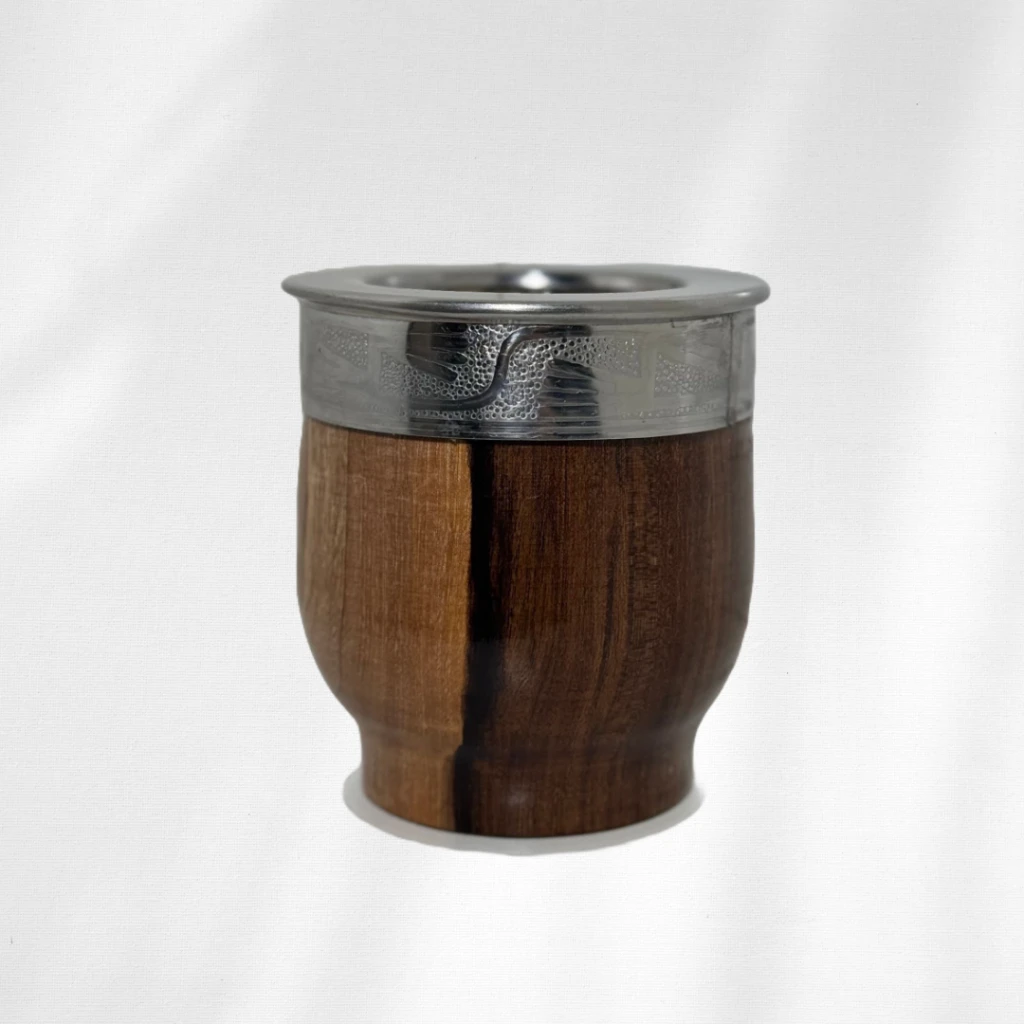 Mate imperial de algarrobo con virola cincelada de acero inoxidable.