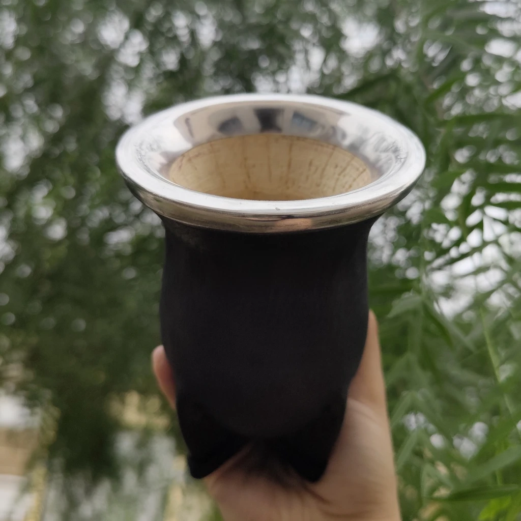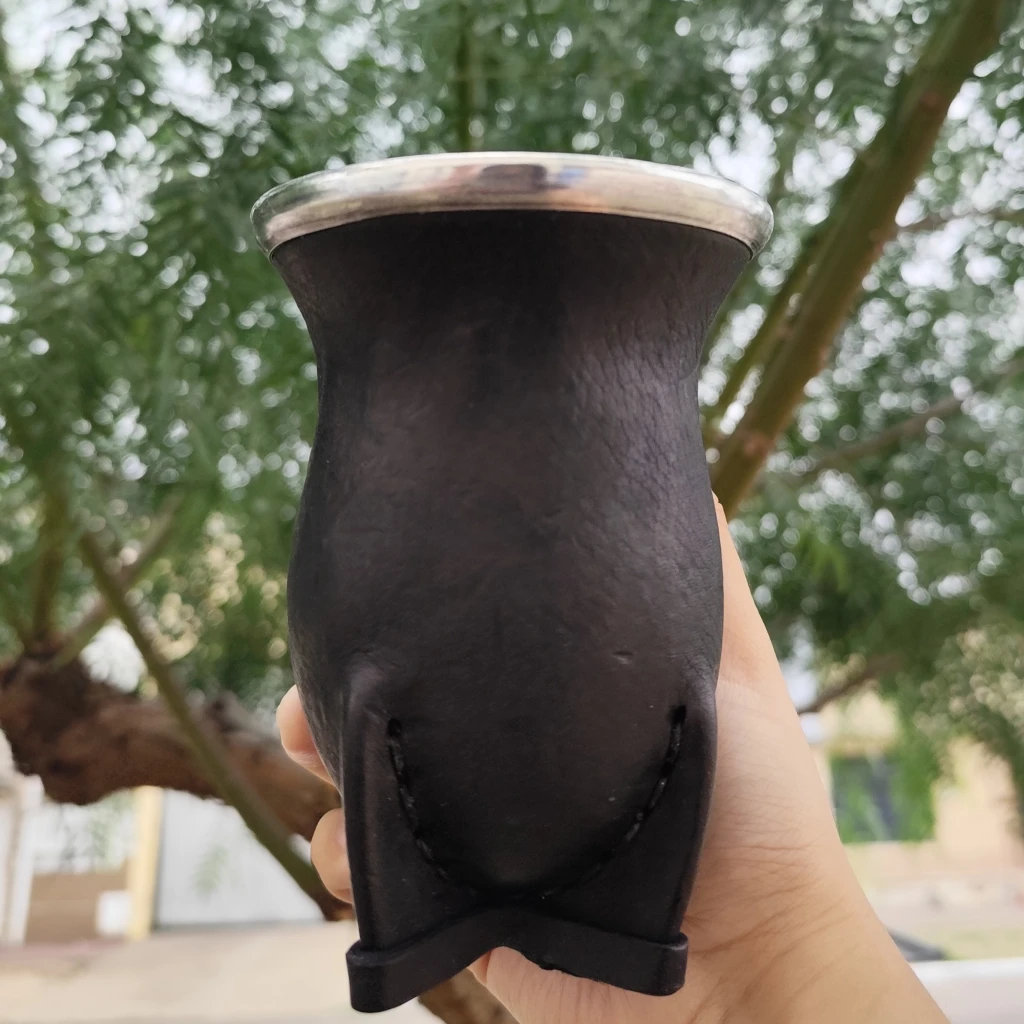 MATE DE CALABAZA CAMIONERO, FORRADO EN CUERO CON VIROLA LISA DE ACERO.