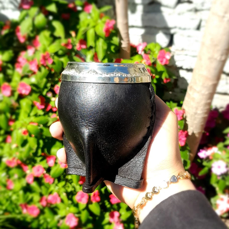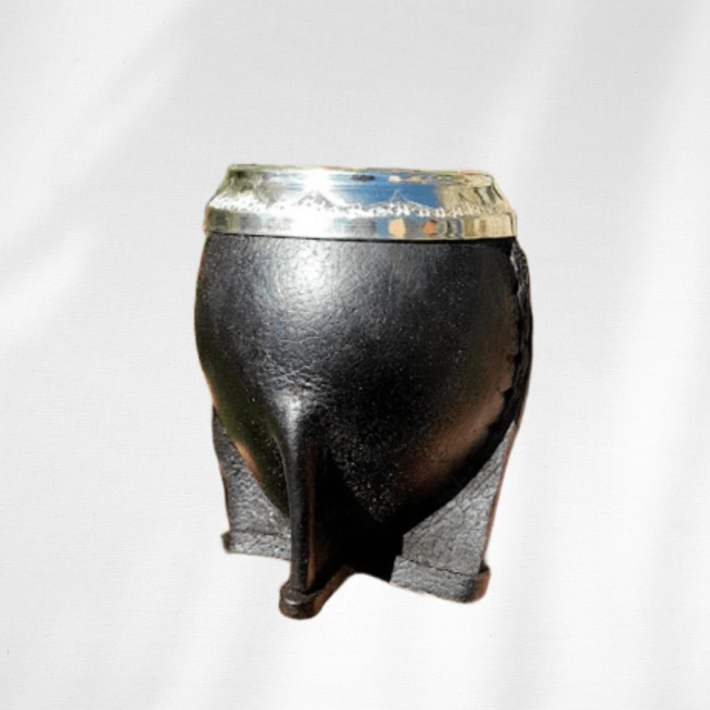 TORPEDO DE CUERO Y ALPACA CINCELADA.
